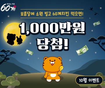 보름달에 소원 빌고 60계치킨 먹으면! 1,000만원 당첨! + 카카오채널 친구 추가하고 쫀득치즈볼 받자! …