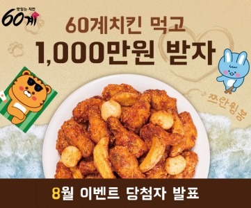 60계치킨 먹고! 1,000만원 받자! 25년 8월 이벤트 당첨자 발표