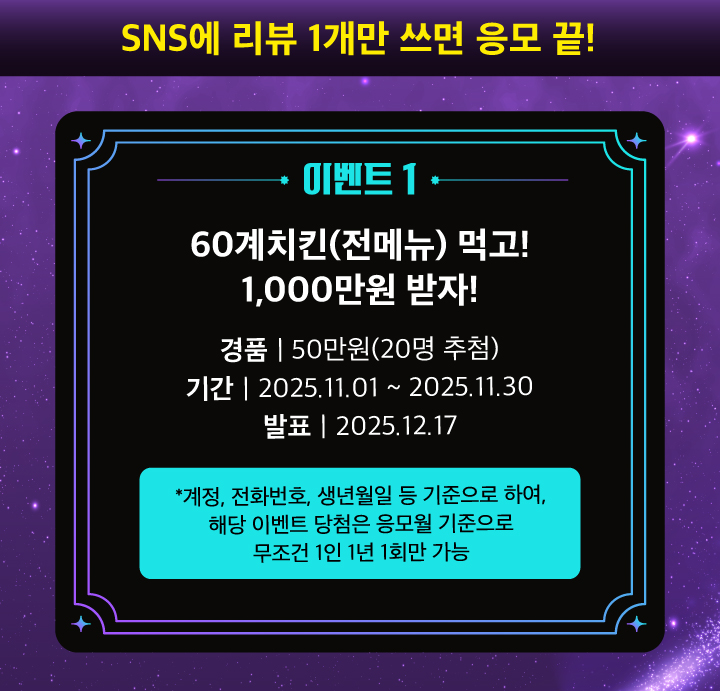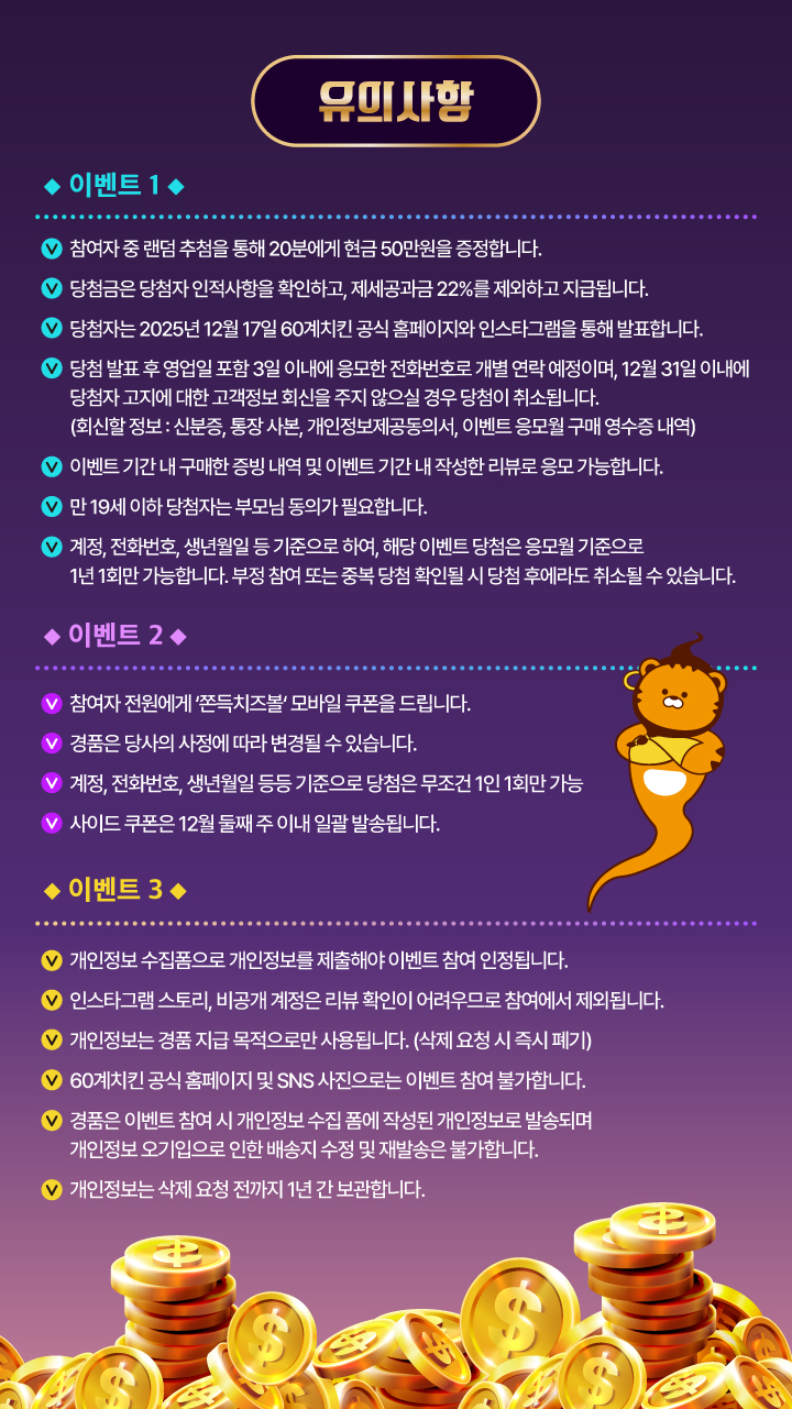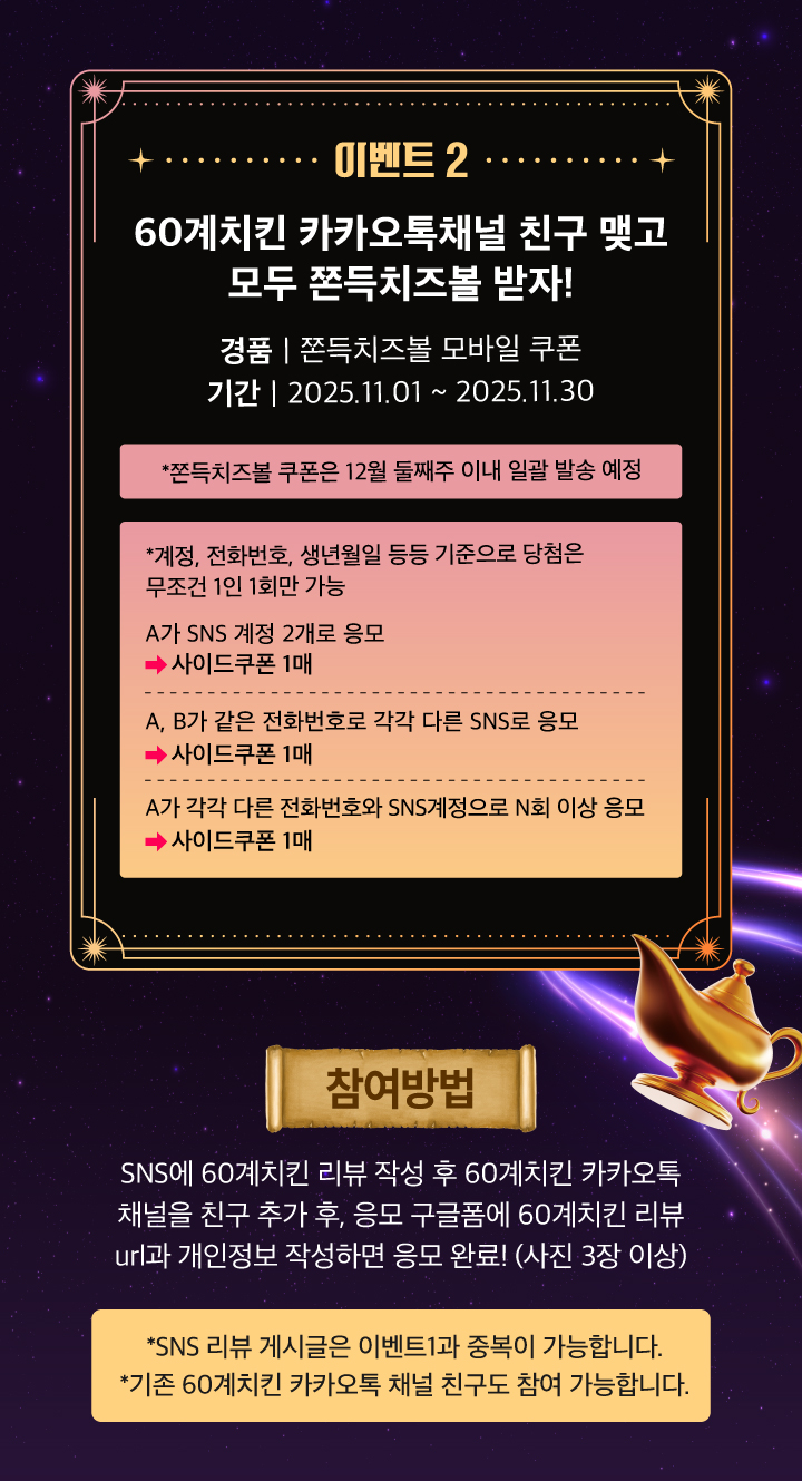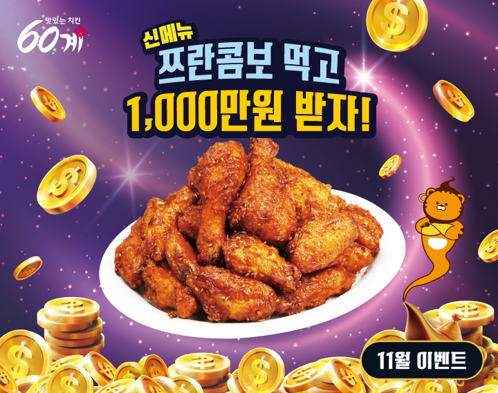 신메뉴 쯔란콤보 먹고 1,000만원 받자!+ 카카오채널 친구 추가하고 쫀득치즈볼 받자! 25년 11월 이벤트