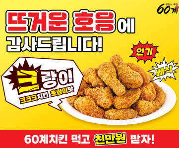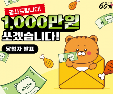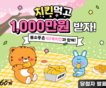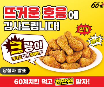 5월 이벤트! 뜨거운 반응! 60계치킨 먹고 1,000만원 받자! 당첨자 발표