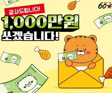 감사드립니다! 1,000만원 쏘겠습니다! 60계치킨 6월 이벤트