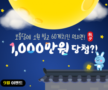 보름달에 소원 빌고 60계치킨 먹으면! 1,000만원 당첨?! 9월 이벤트