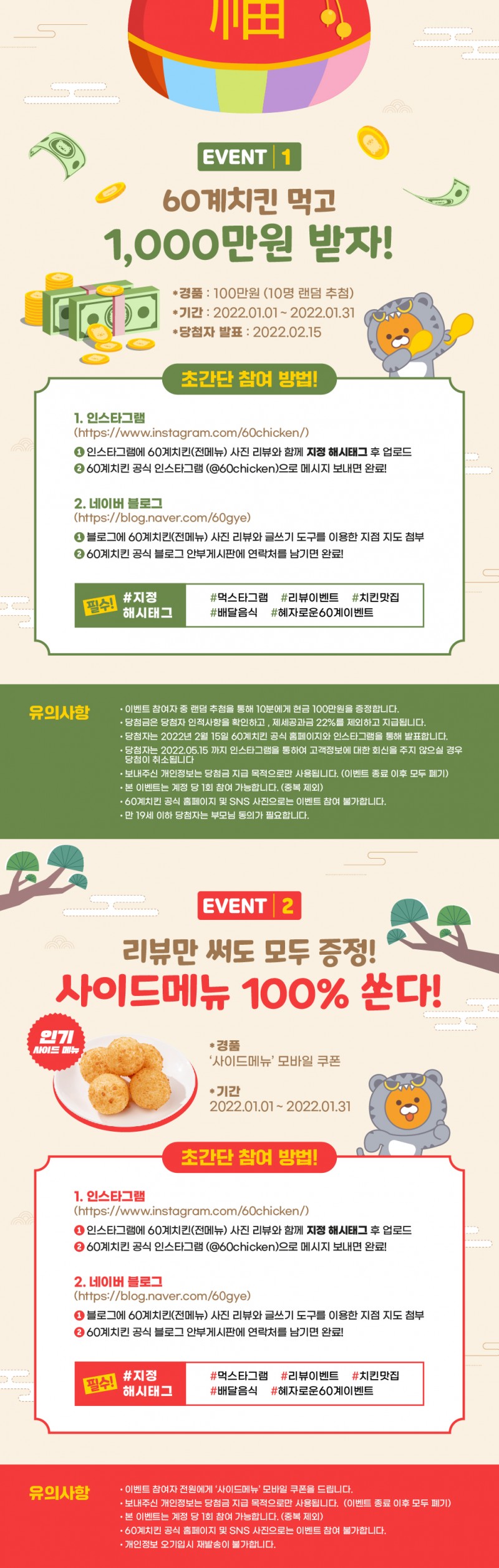 [1월 이벤트] 60계치킨 먹으면 행운이 팡팡!