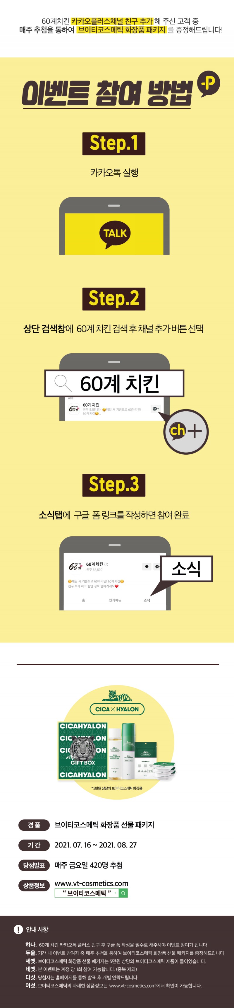 60계치킨 카카오플친 맺고 브이티 코스메틱 화장품 선물받자~!